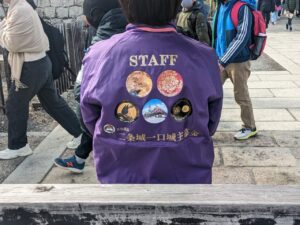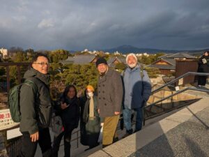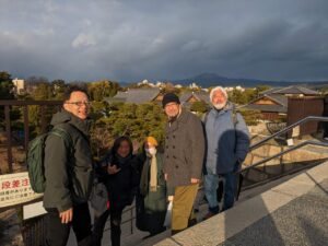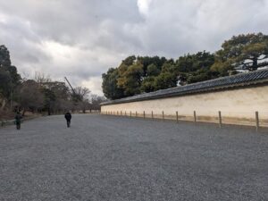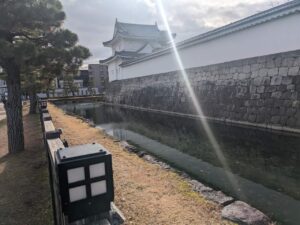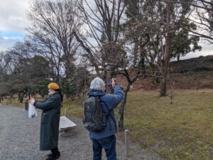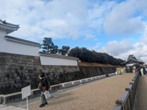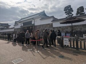 フォトギャラリー No.3 投稿日 2024年3月6日 更新日 2024年3月8日 著者 webmaster-np カテゴリー 2023年度-二条城 堀川通を挟んで二条城の正門、東大手門を臨む 二条城の東側に位置する入り口には、観光バスが並ぶ 東大手門の脇にある事務所で入場券を購入できる 重要文化財の東大手門前にある団体用の入場口 重要文化財の東大手門は2階建て(櫓門) 東大手門 1662年(寛文2年)ごろに建築されたとされる 事務所前の入り口から東大手門へ向かう右手には圧巻の城壁 堀川通に面した二条城の東側 案内スタッフが着用するおそろいの紫色ジャンパー 東大手門前広場の案内 当時は空き地を木戸などで囲い、要所には番所が設けられた 洛中洛外図に見る二条城 外堀 東大手門と城壁 その裏には番所が控える 1788年(天明8年)の大火で多くの建物が焼失する中、東南隅櫓は残った 重要文化財の南東隅櫓 見張り台と武器庫の役割を担っていた 内堀に囲まれた本丸御殿 1893年(明治26年)に京都御所から移築 閉まったままの南門 大正天皇の即位の儀のために新築された どこなのかわかりません 二条城内です 唐門から梅林に向かう南側に広がる城壁 天守閣跡の南側に広がる梅林 庭園に香る白梅 観光スポットとしては穴場の梅林 1月の終わりにすでに咲き始める 研究メンバーが城壁などを撮影中 いろんな発見あり 調査・視察中のプロジェクトメンバー 調査・視察中のプロジェクトメンバー2 旧二条城跡の最も高い場所からは京都市内が一望できる ギャラリー